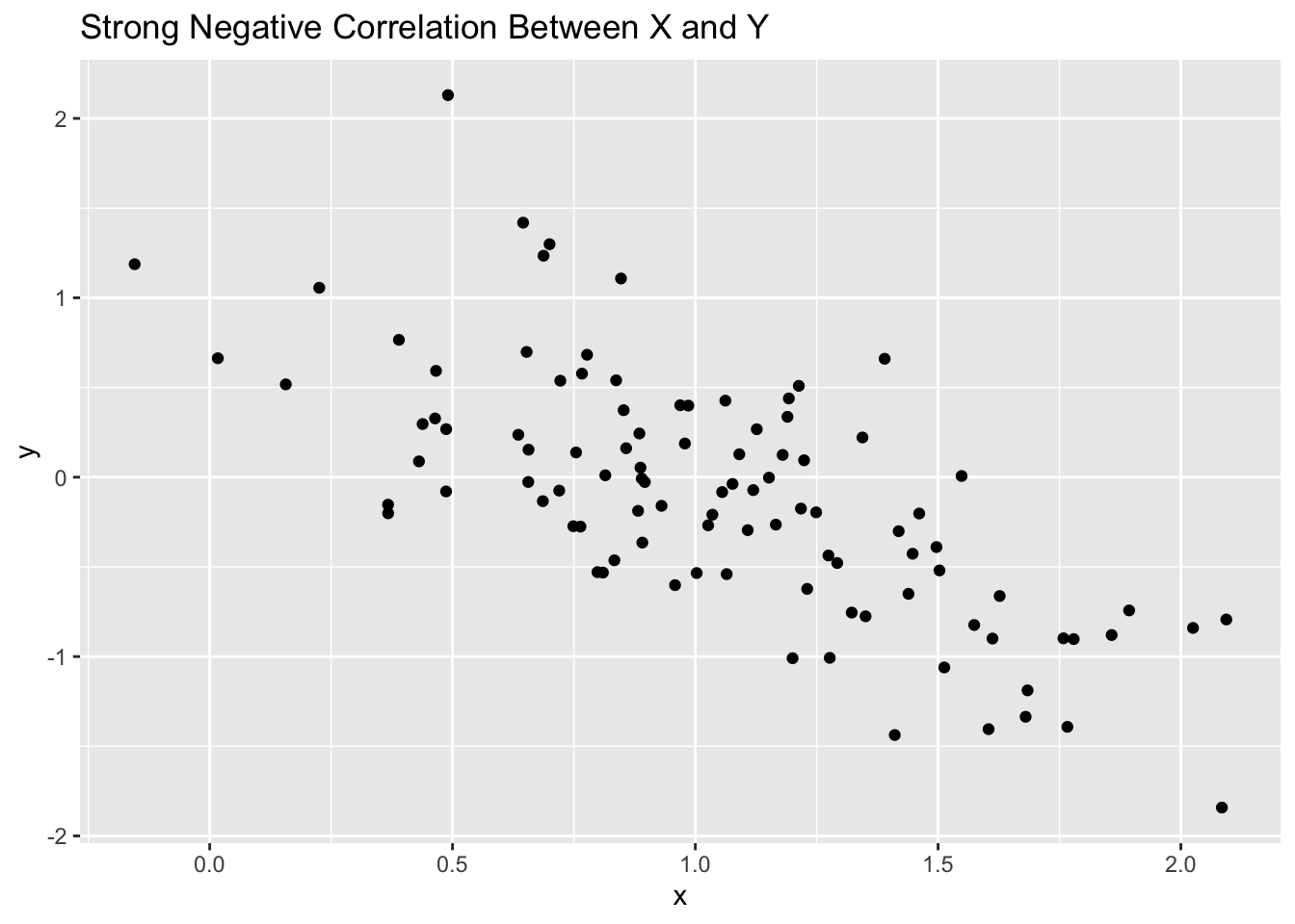 # strong negative correlationggplot(d4, aes(x, y)) +geom_point() +labs(title="Strong Negative Correlation Between X and Y")